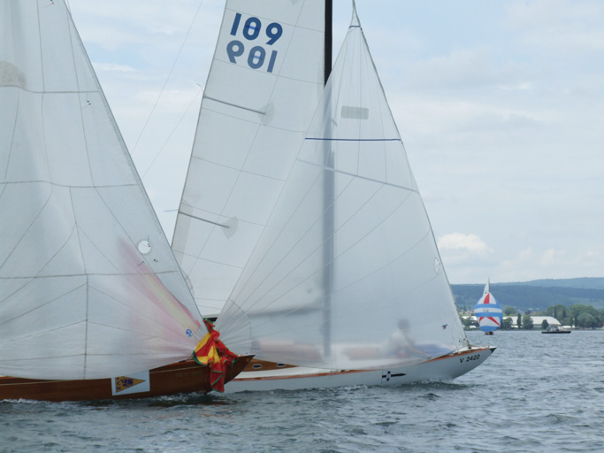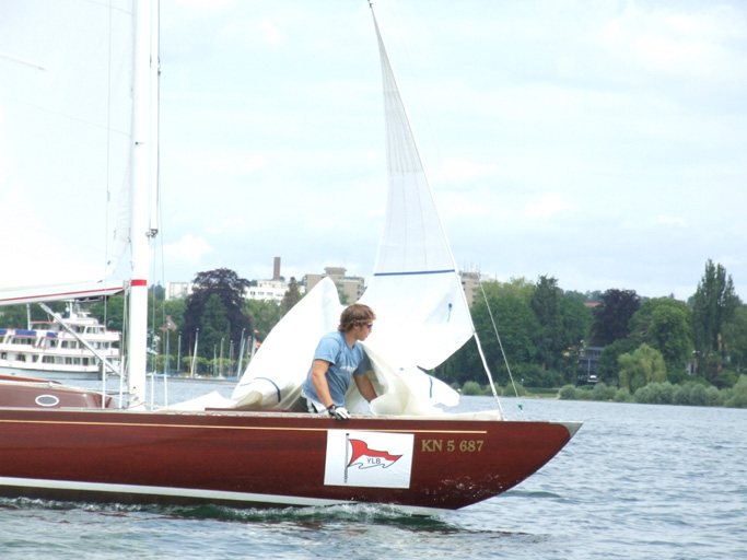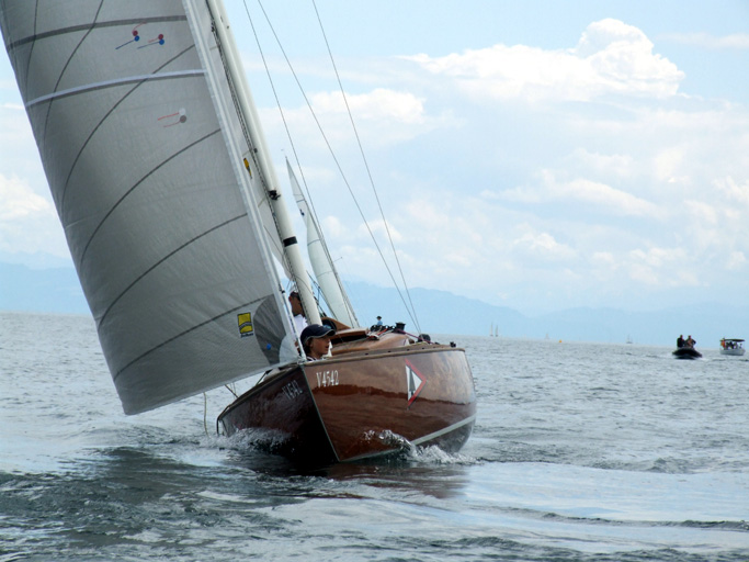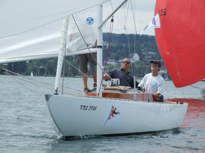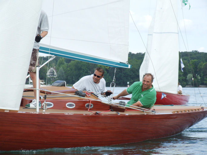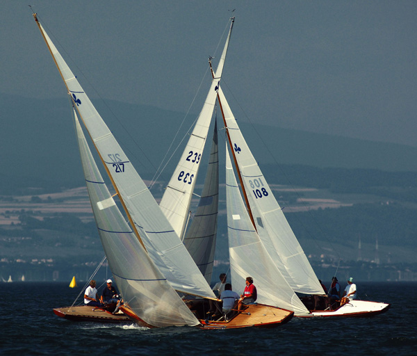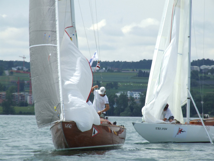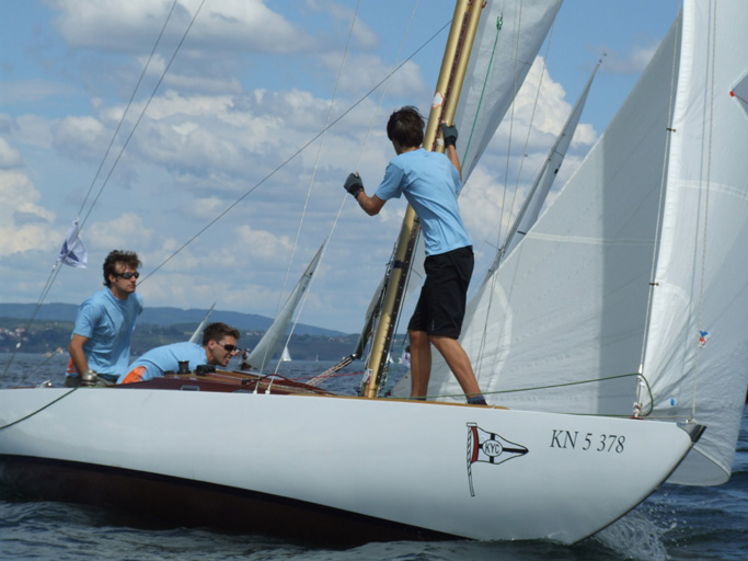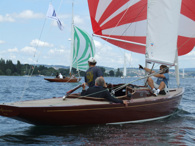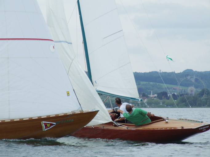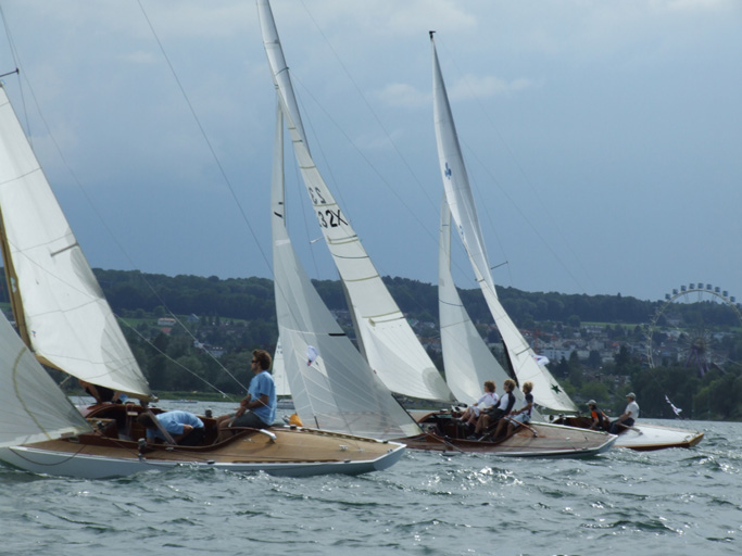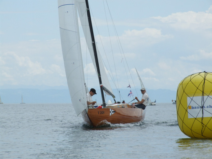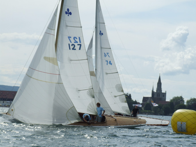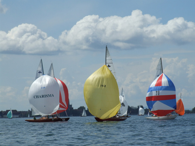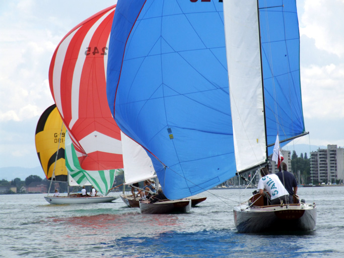 Heute beginnt im Konstanzer Trichter zwischen Seestrasse und Hafen der Goldpokal, bei dem es insgesamt einen ein Kilogramm schweren Goldbarren zu gewinnen gibt. Gesegelt wird ausschließlich im Lacustre, einer klassisch eleganten Renn-Segelyacht mit interessanter Geschichte: Am Genfersee war das Segeln zu Beginn des 20. Jahrhunderts eine schicke Mode-Erscheinung, die Reichen und die Schönen trafen sich in ihrer Freizeit zum Shippern. Vor allem am westlichen Ende des Lac Leman, wo zwischen Versoix und Genf die Villen der Gutbetuchten das Ufer säumen, galt es äußerst schick und angesehen, eine Sechs-Meter-Rennyacht oder einen extra aus Schweden eingeführten 30-Quadratmeter-Schärenkreuzer eigentlich konzipiert für das Küstengebiet Skandinaviens zu segeln. In dieser extravaganten und vornehmen Szenerie bewegte sich auch der 1907 geborene Henri Copponex. Kaum 20, steuerte er als Skipper die Rennmaschinen etlicher Herren von der Societe Nautique de Geneve, des 1872 gegründeten und als einer der exklusivsten Vereinigungen der Welt bekannten Yachtclubs. In den folgenden Jahrzehnten wurde er als Konstrukteur etlicher Regattayachten international bekannt. Das berühmteste von ihm entworfene Boot ist der Lacustre. Er entstand im Auftrag eines wohlhabenden Genfer Zahnarztes, der sich eine dem Schärenkreuzer ähnliche Yacht wünschte, jedoch etwas kleiner und besser auf die Verhältnisse am Genfersee zugeschnitten. Was Copponex 1938 präsentierte, war eine neuneinhalb Meter lange und nur 1,81 Meter breite Rennyacht mit einer berechneten Segelfläche von 25 Quadratmeter am Wind.