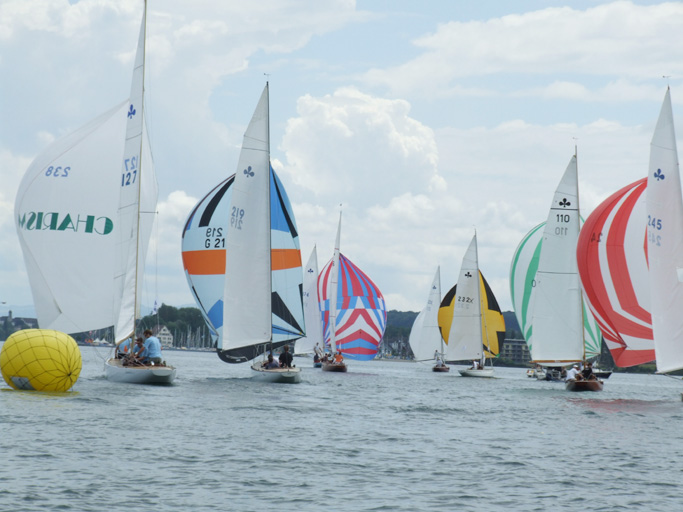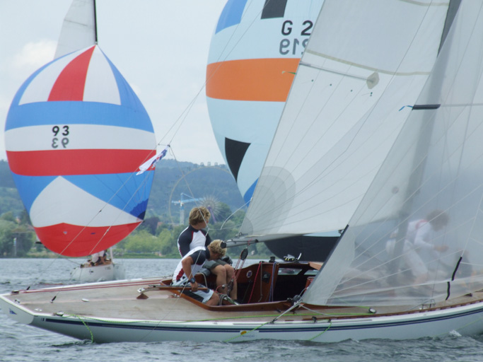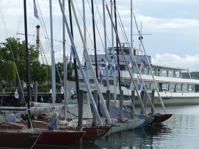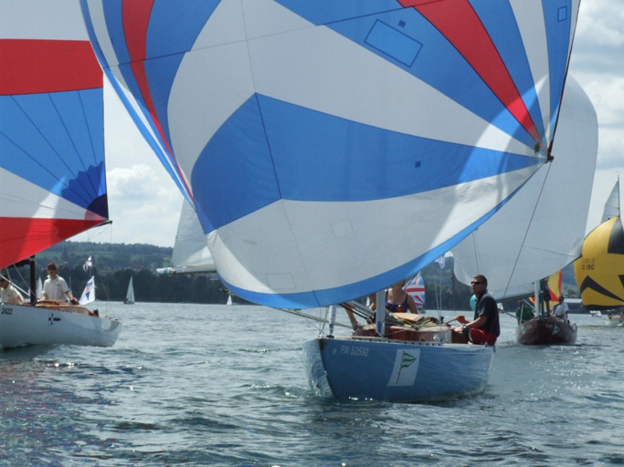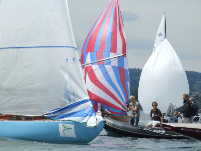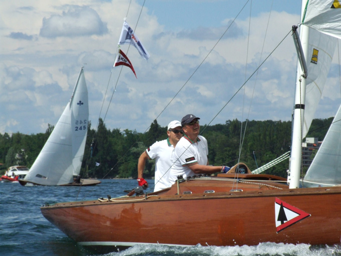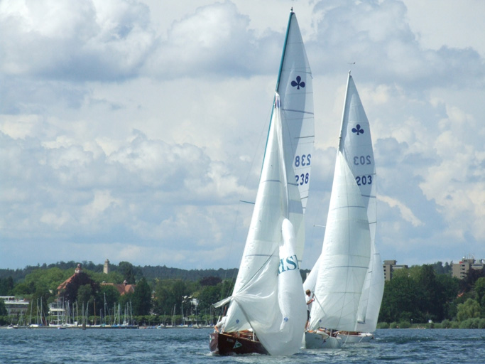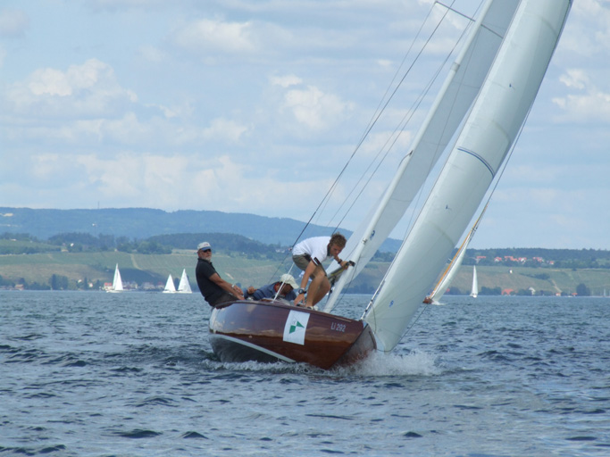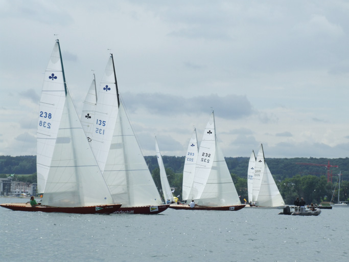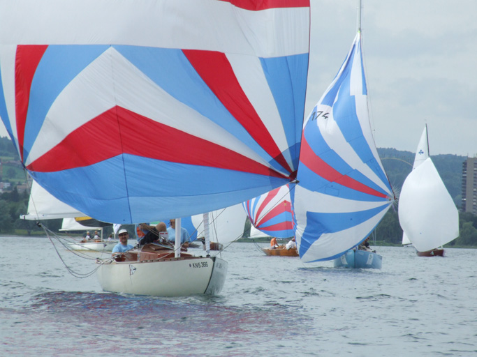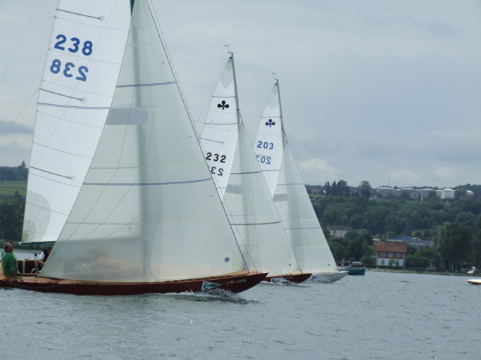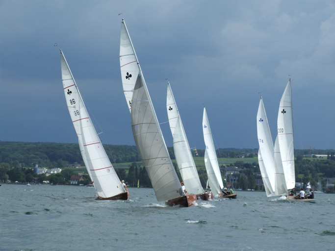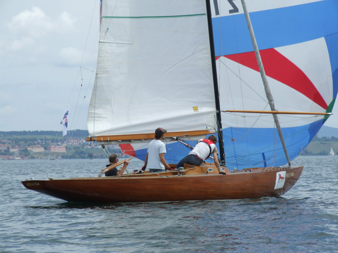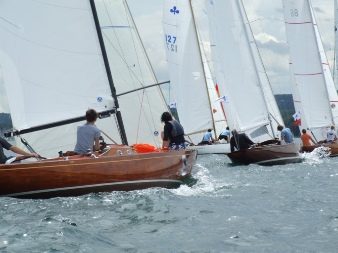 Heute beginnt im Konstanzer Trichter zwischen Seestrasse und Hafen der Goldpokal, bei dem es insgesamt einen ein Kilogramm schweren Goldbarren zu gewinnen gibt. Gesegelt wird ausschließlich im Lacustre, einer klassisch eleganten Renn-Segelyacht mit interessanter Geschichte: Am Genfersee war das Segeln zu Beginn des 20. Jahrhunderts eine schicke Mode-Erscheinung, die Reichen und die Schönen trafen sich in ihrer Freizeit zum Shippern. Vor allem am westlichen Ende des Lac Leman, wo zwischen Versoix und Genf die Villen der Gutbetuchten das Ufer säumen, galt es äußerst schick und angesehen, eine Sechs-Meter-Rennyacht oder einen extra aus Schweden eingeführten 30-Quadratmeter-Schärenkreuzer eigentlich konzipiert für das Küstengebiet Skandinaviens zu segeln. In dieser extravaganten und vornehmen Szenerie bewegte sich auch der 1907 geborene Henri Copponex. Kaum 20, steuerte er als Skipper die Rennmaschinen etlicher Herren von der Societe Nautique de Geneve, des 1872 gegründeten und als einer der exklusivsten Vereinigungen der Welt bekannten Yachtclubs. In den folgenden Jahrzehnten wurde er als Konstrukteur etlicher Regattayachten international bekannt. Das berühmteste von ihm entworfene Boot ist der Lacustre. Er entstand im Auftrag eines wohlhabenden Genfer Zahnarztes, der sich eine dem Schärenkreuzer ähnliche Yacht wünschte, jedoch etwas kleiner und besser auf die Verhältnisse am Genfersee zugeschnitten. Was Copponex 1938 präsentierte, war eine neuneinhalb Meter lange und nur 1,81 Meter breite Rennyacht mit einer berechneten Segelfläche von 25 Quadratmeter am Wind.