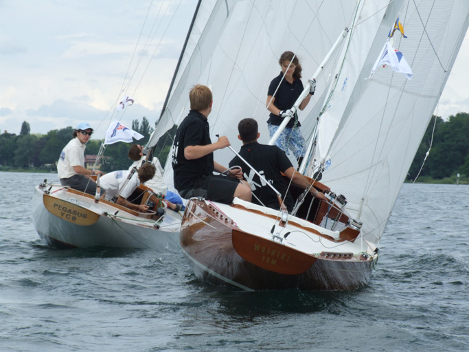 Dabei segelt der Nachwuchs des YCB ohnehin schon auf hohem Niveau. Die Jugendmannschaft, bestehend aus David Bargehr, Lukas Mähr und Ceci Veraar, erwies sich als bestens auf die Herausforderung Goldpokal vorbereitet: Das Trio gewann sensationell die erste Wettfahrt, legte einen dritten Rang nach und holte sich überlegen die Jugendwertung. Lohn dafür: Eine Einladung der gesamten Mannschaft auf die 42 Meter lange Oldtimeryacht Ashanty. Ihre ebenfalls jugendlichen Teamkollegen vom zweiten Boot, Max Trippolt und Julian Meister, die von Altmeister Fritz Trippolt angeleitet wurden, zeigten sich ebenfalls in Bestform - am Ende der Serie lag das Team des YCB mit grossem Vorsprung voran.
